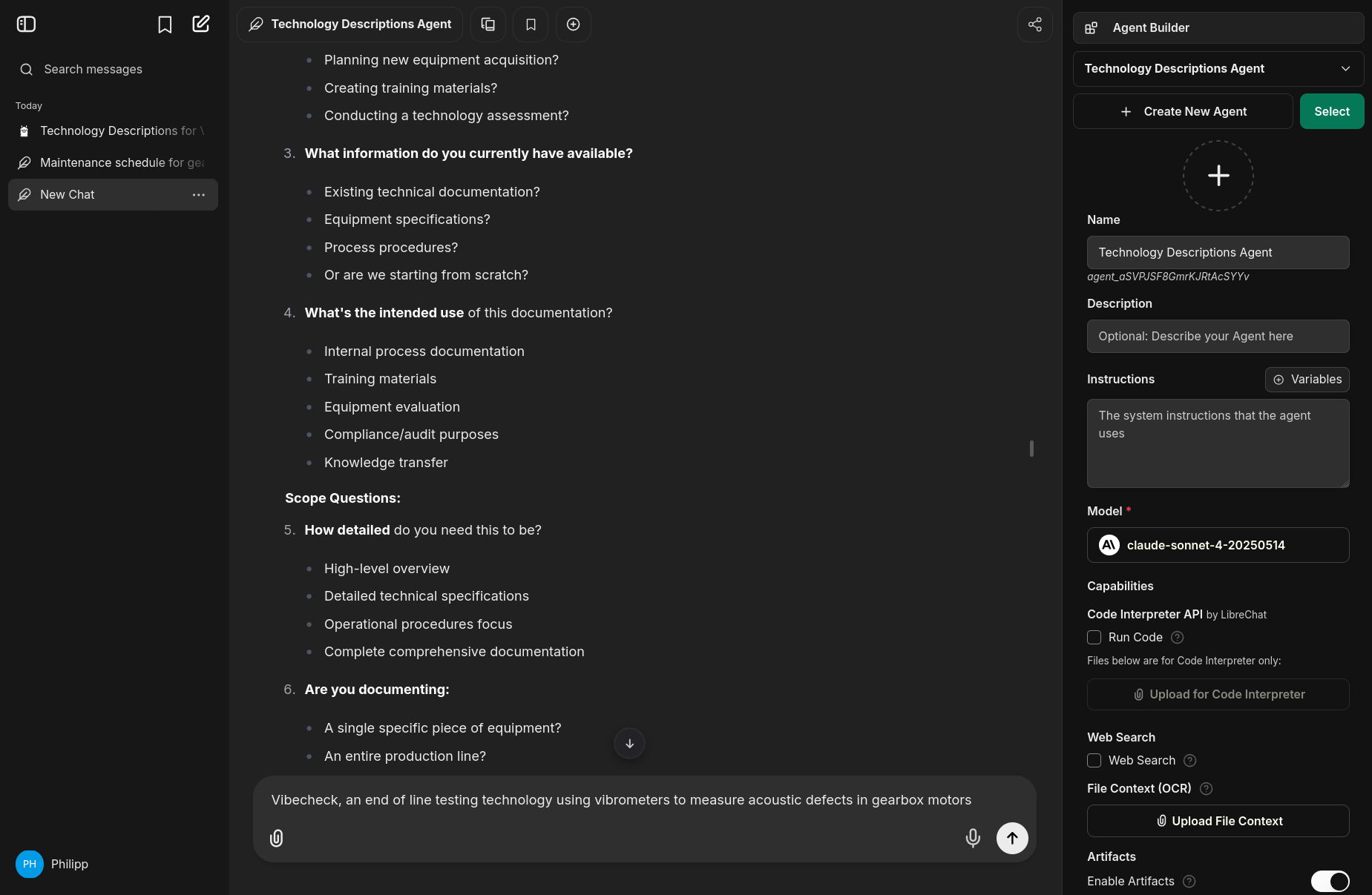 The PoC will consist of a model that can answer questions about suppliers and production lines, and an agent that can generate Systems Description and Technology Description documents.